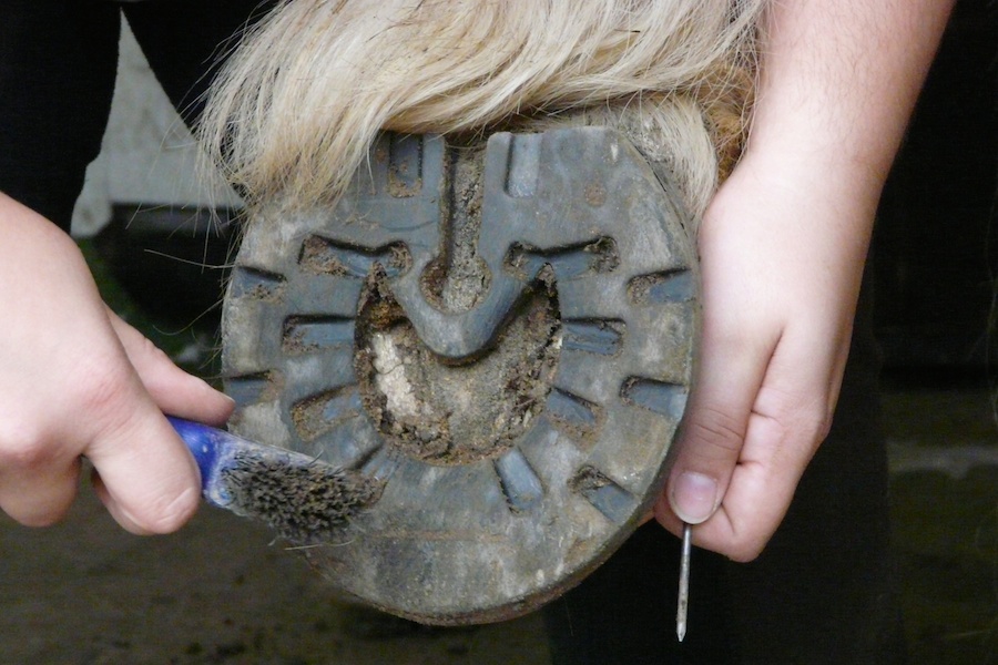 Etwas schwierig gestaltete sich das Hufe auskratzen beim Performance Modell durch den Steg in der Mitte. Dennoch bringt der EasyShoe im Vergleich zu anderen Kunstoffbeschlägen eine entscheidende Erleichterung mit. Der Schlitz in der Mitte des Steges und seine Flexibilität lassen es zu, den Strahl und die seitlichen Strahlfurchen mit ein bisschen Übung und dem richtigen Werkzeug zu reinigen.