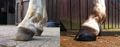Die Stellung der Hufe nach 5 Wochen Performance war auf jeden Fall deutlich besser als nach 5 Wochen Compete. Beim Compete hatte sich die Zehe einfach zu stark abgelaufen. Ob nun der Performance einfach viel mehr aushält, oder ob dies durch die vermehrte Trachtenlandung aufgrund der besseren Unterstützung des Strahls so ist, oder eine Kombination aus beidem?